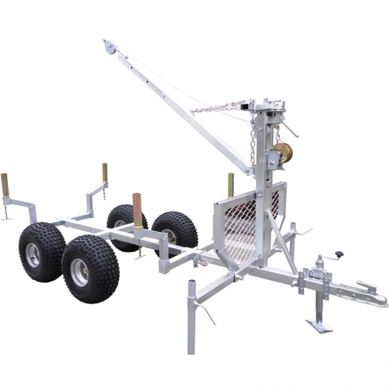 Som en atv tømmer trailer er det veldig enkelt og effektivt å laste og transportere skogen med en kran på den. Siden stabilisatorer holde tilhengeren stabilt når lasting eller lossing med boom heisen.